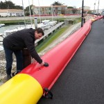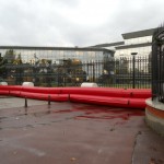 They are implemented by pre-inflating them with air using the thermic air blower. Inflation allows easy handling of the flood barrier, and gives it an optimal shape to increase its effectiveness. WATER RAILS ® is then filled with water using one or more pumps depending on the lengths of the tubes.